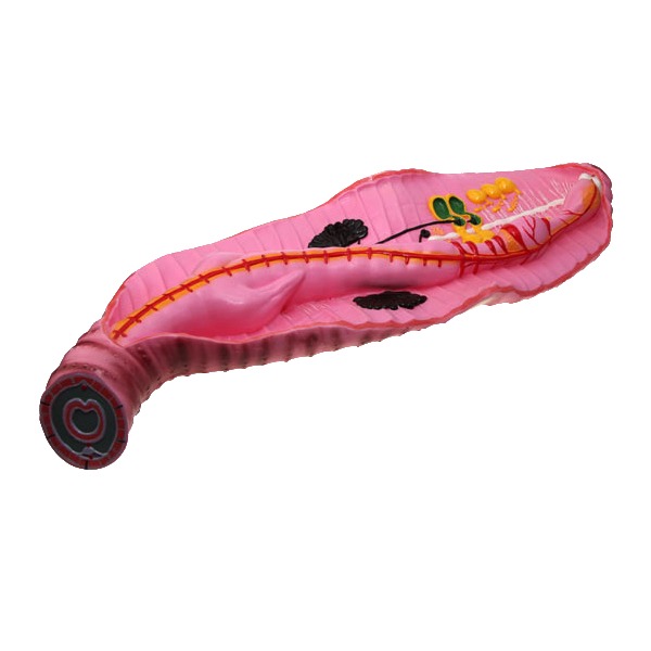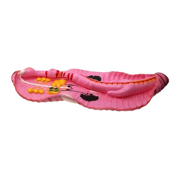 Дана навчальна модель наочно, на прикладі дощового черв’яка, демонструє будову (зовнішню та внутрішню) кільчастого хробака.