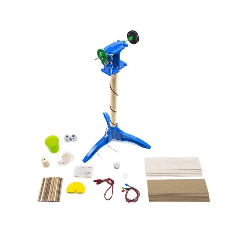 З допомогою цього комплекту юні науковці зможуть випробувати різні конструкції вітряків, самостійно видобувати електроенергію (у діапазоні 0,5–3 В) та навіть піднімати тягарі.