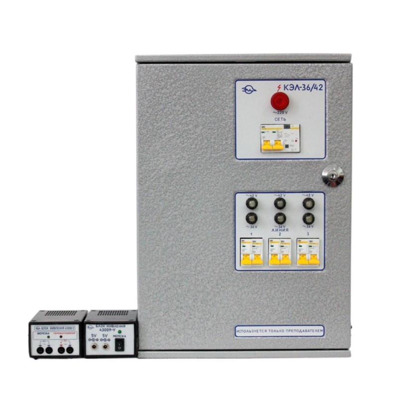 Комплект електрозабезпечення КЕЛ–36/42 призначений для оснащення кабінетів (лабораторій) фізики, хімії, біології загальноосвітніх шкіл і застосовується для забезпечення електроживленням приладів, пристроїв, електросхем під час виконання демонстраційних дослідів, фронтальних лабораторних робіт, практикумів, гурткових і факультативних занять.
