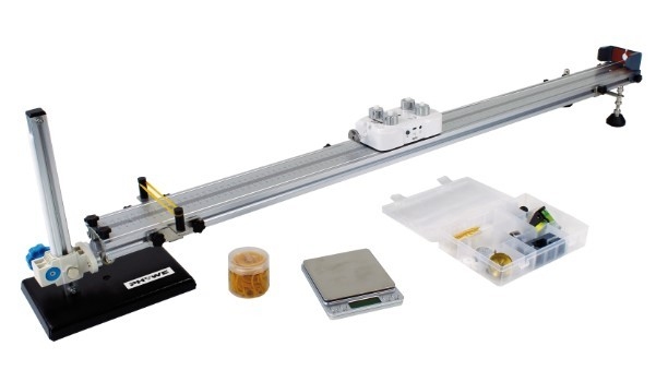 Датчик сили: Діапазон вимірювань: 10 Н / 50 Н Роздільна здатність: 0,01 Н / 0,03 Н Частота вимірювань: 1000 Гц / 5000 Гц Датчик швидкості та положення: Діапазон вимірювань швидкості: 3 м/с Діапазон вимірювань положення: 0,1 мм Частота вимірювань: 800 Гц Датчик прискорення: Діапазон вимірювань: 16 g Частота вимірювань: 500 Гц Перезаряджуваний літій-іонний акумулятор Регульована по висоті дорожка, довжина 1,2 м Необхідні приналежності для проведення 8 експериментів