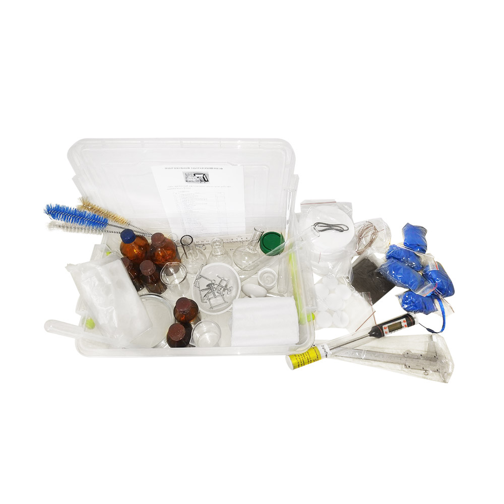 Адже до комплекту входить повний перелік лабораторного посуду та різноманітних приладів, які знадобляться учням для виконання лабораторних робіт, передбачених затвердженою навчальною програмою. Просто придбайте необхідну кількість наборів — і забудьте про нестачу скляних пробірок, відливних склянок, пляшечок для зберігання реактивів та інших таких необхідних дрібниць.