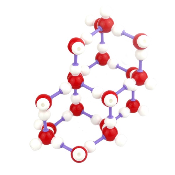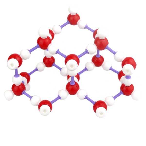 Ця демонстраційна модель показує склад і будову молекули льоду за допомогою різнокольорових кульок: