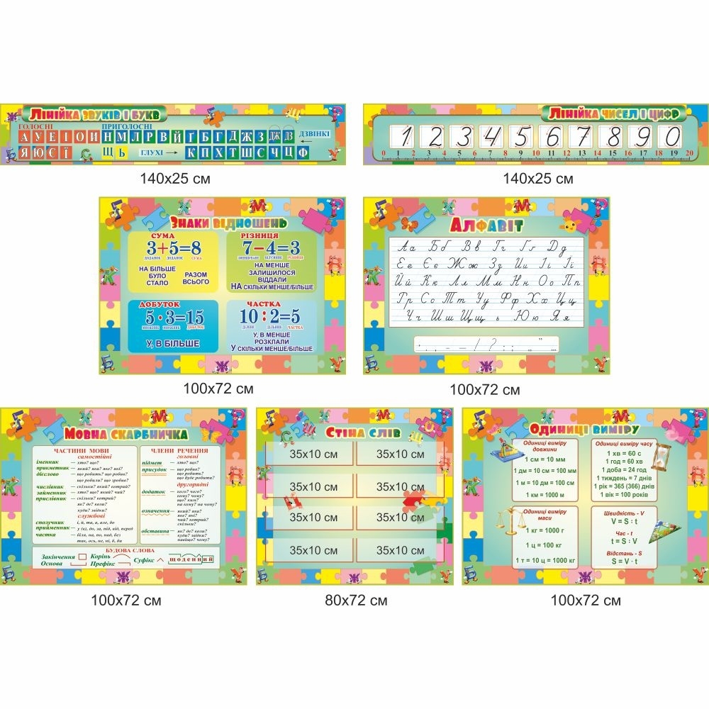 Набір сучасних кольорових стендів для оформлення інтер'єру класу початкової школи