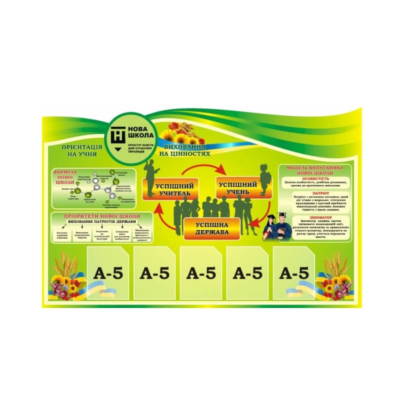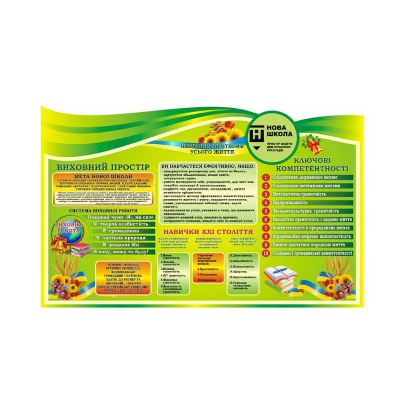 Представлений комплект стендів призначений для використання у кабінетах нової української школи.