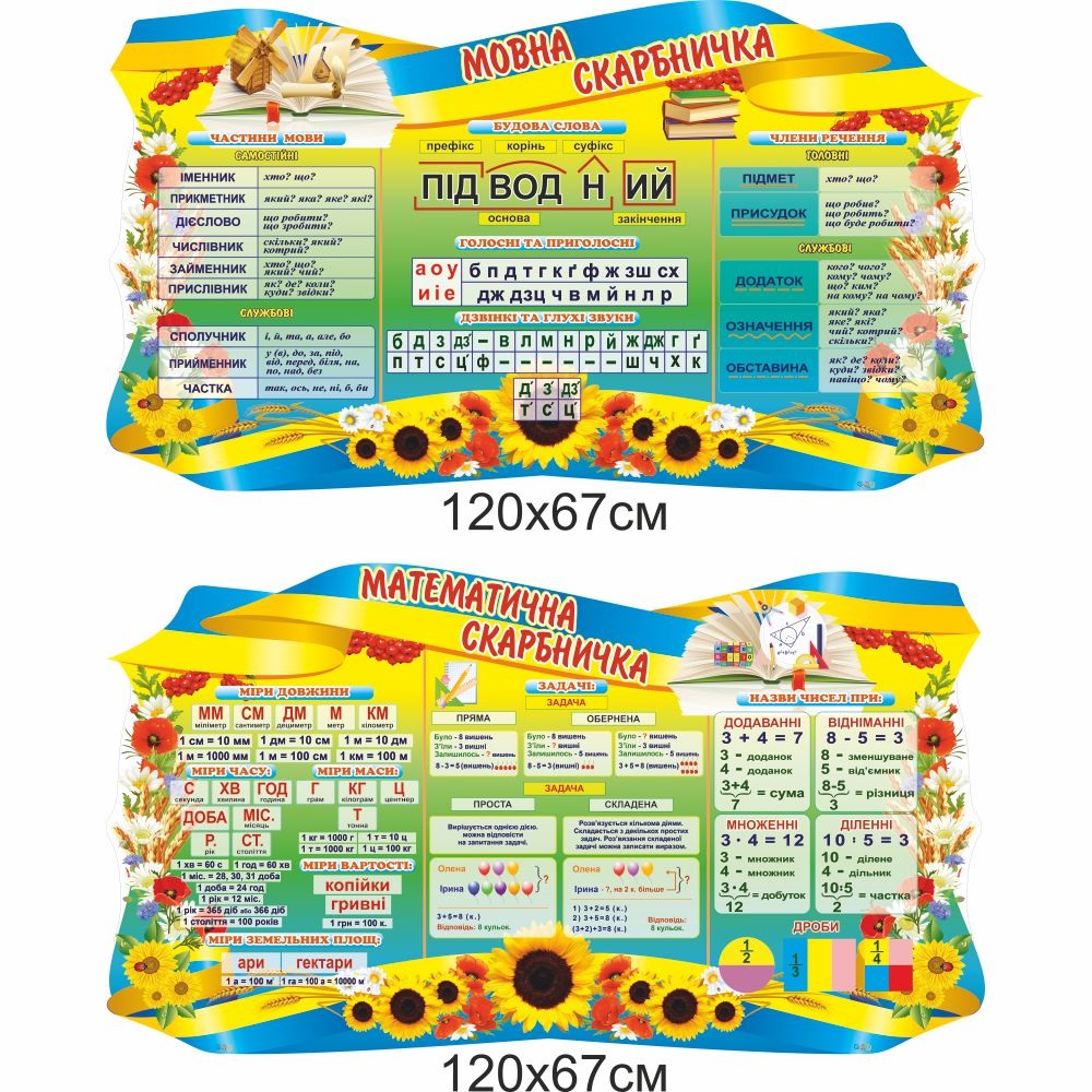 В цьому наборі – 2 стенди, кожен має розмір 1200х670 мм.