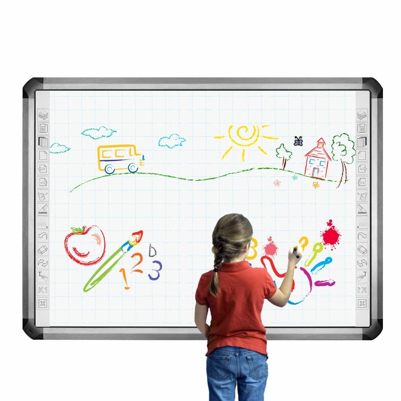 Велика інтерактивна дошка в поєднанні з якісним короткофокусним проєктором дають можливість отримати чітке зображення, яке можна побачити з будь-якого куточка шкільного кабінету, навіть великого за площею та добре освітленого.