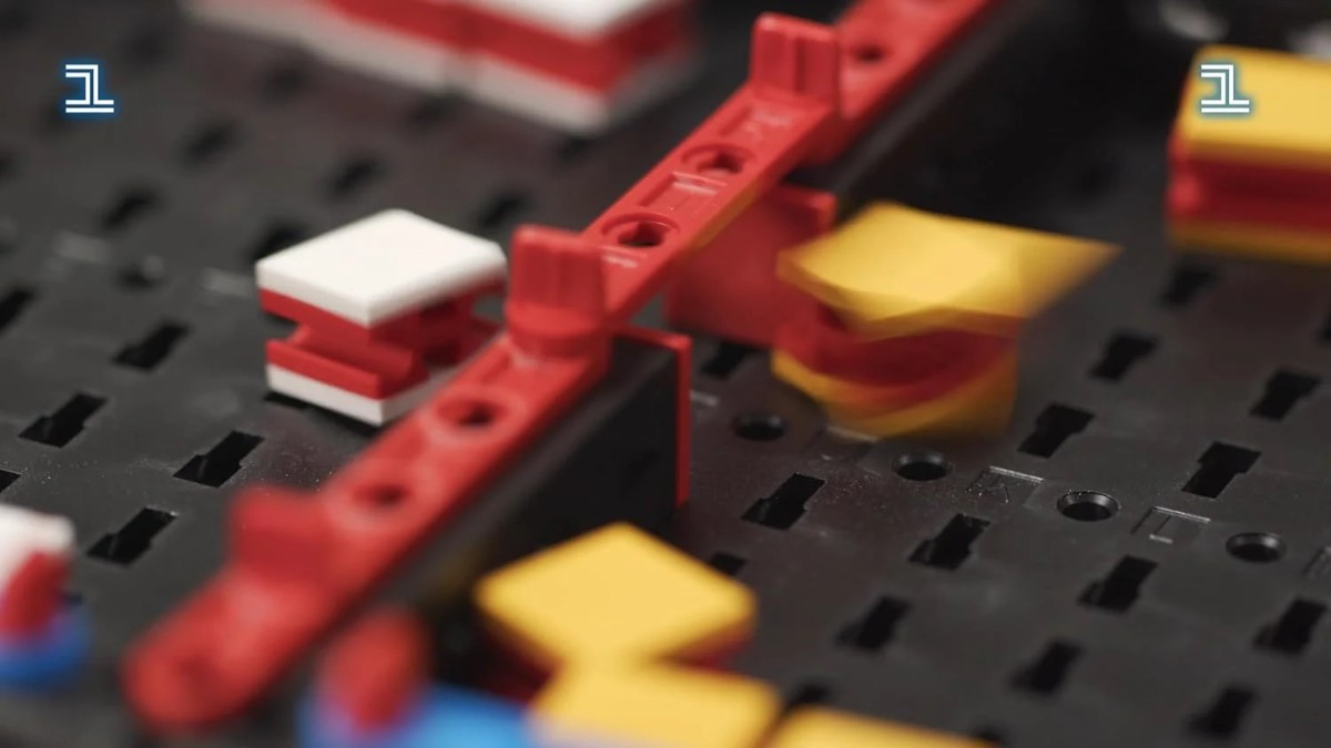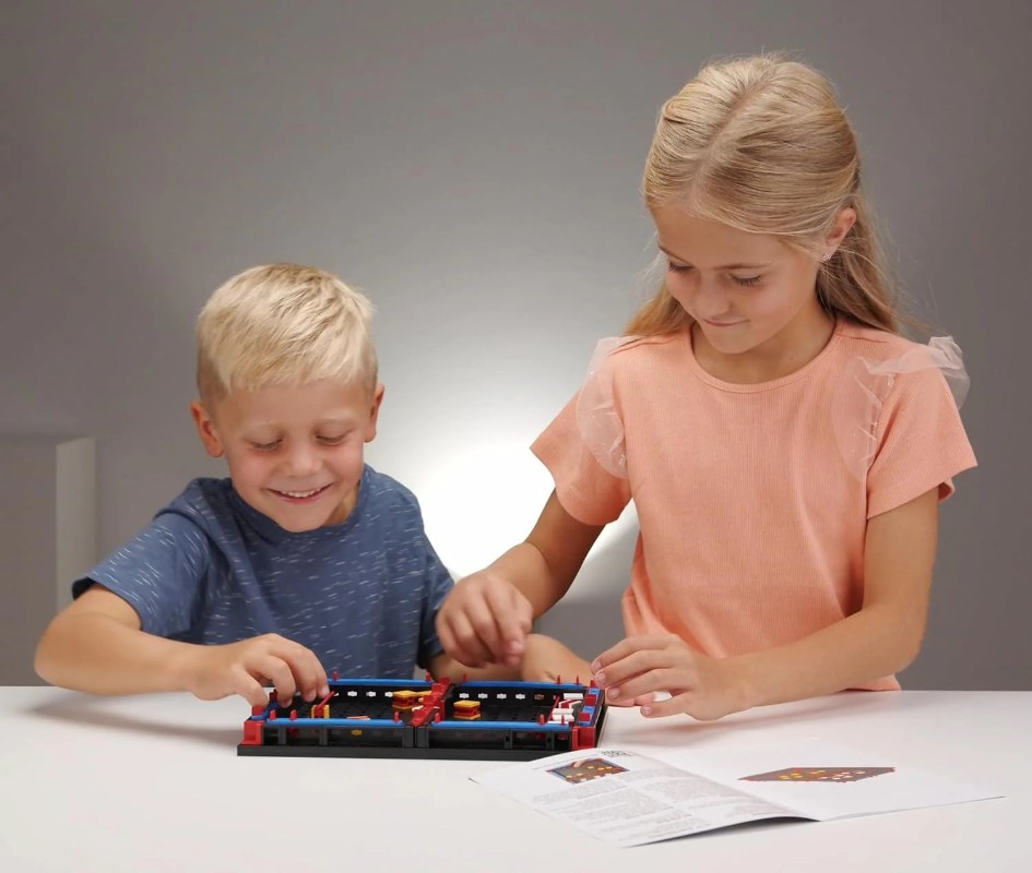 Конструктор дозволяє учням самостійно зібрати яскраву ігрову конструкцію, після чого використовувати її для командних або парних змагань.