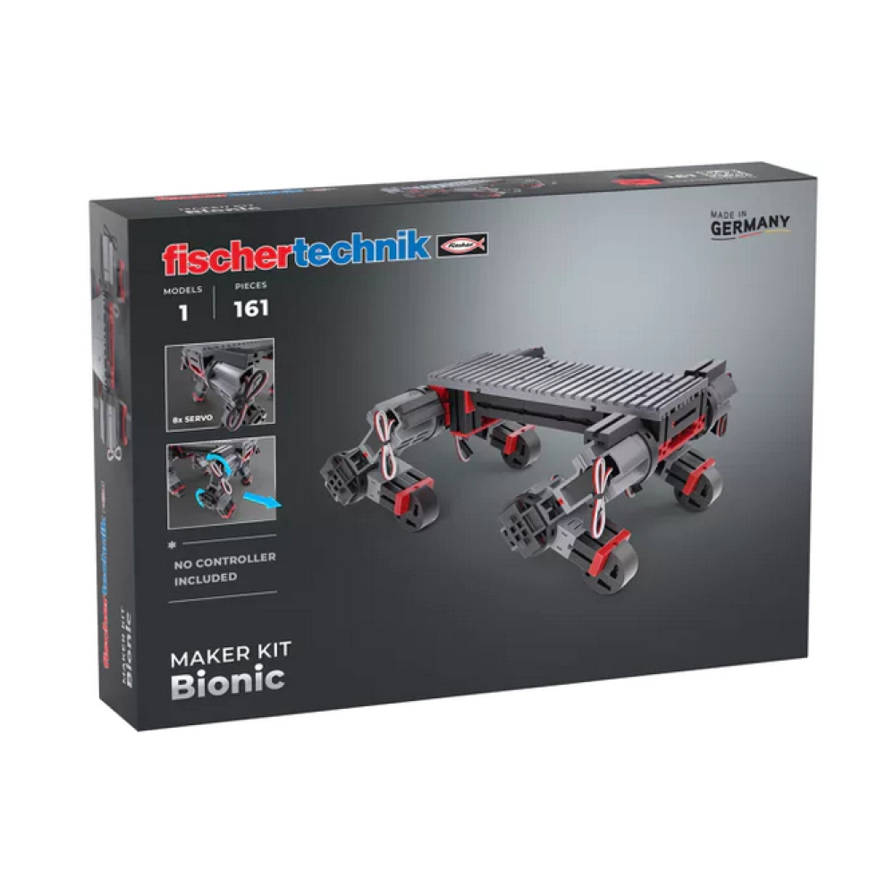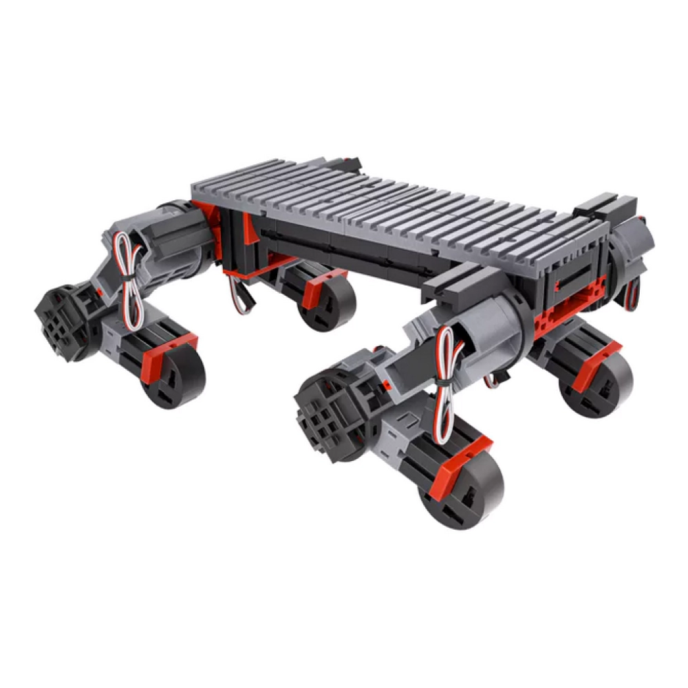 - Набір дозволяє створити модель крокуючого робота з 8 ступенями свободи, що дає змогу відтворювати реалістичні рухи, подібні до ходьби. Така конструкція допомагає досліджувати принципи руху роботів та механіку складних роботизованих систем.