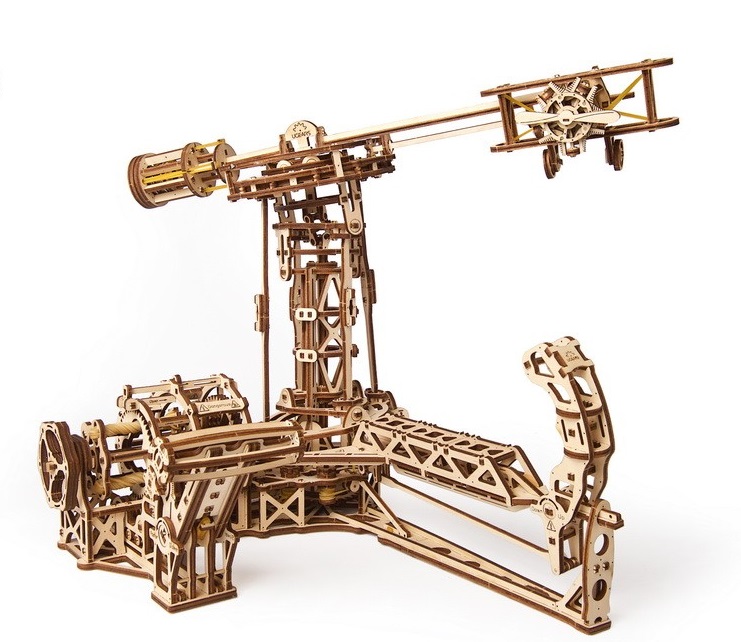Механічна модель «Авіатор» створена для тих, хто не лишає мрію про небо, навіть якщо твердо стоїть на землі. Вона складається з трьох окремих модулів: гелікоптера, літака та головного пульта управління. Усі, що потрібно зробити — обрати літальний апарат, встановити його на шасі та злетіти.
