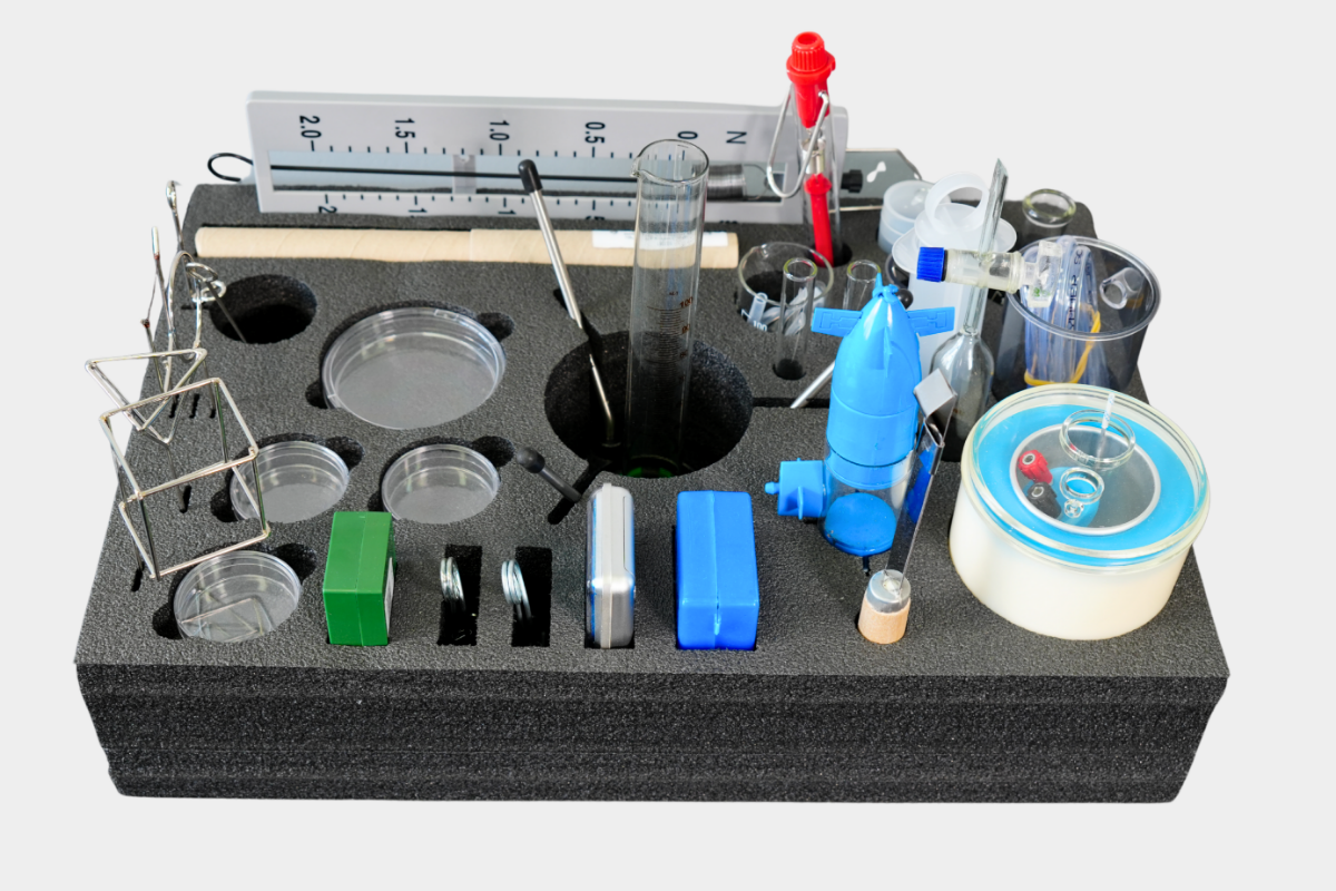 Лабораторний комплект «Молекулярна фізика і термодинаміка» містить усе необхідне для проведення 10 лабораторних робіт у групах по 2–4 учні.