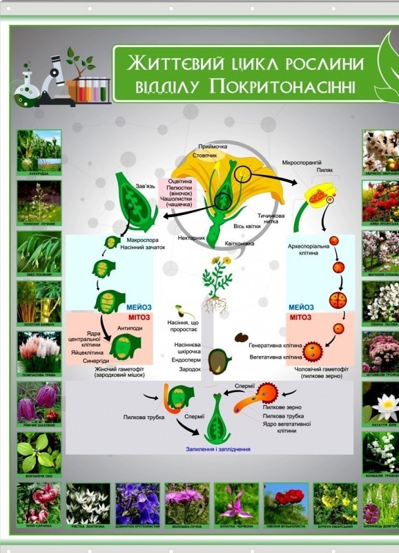 Плакат для изучения жизненного цикла покрытосеменных растений