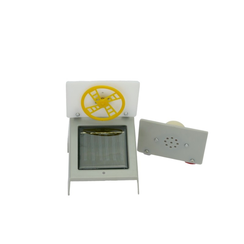 К солнечной батарее прибора с помощью клемм можно подключать вольтметр, электродвигатель, динамик или любой другой потребитель электрического тока. Задача каждого из этих приборов демонстрировать преобразования солнечной энергии в электрическую с ее возможным последующим преобразованием для практического использования. На примере электродвигателя и динамика, входящих в состав комплекта, демонстрируется преобразования этой энергии в механическую работу и звуковые колебания.