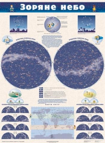 Карта северного и южного полушарий звездного неба для изучения на уроках географии и астрономии.