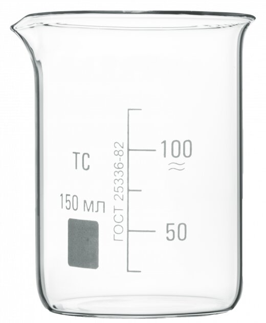 Общая емкость данного стакана - 150 мл. На корпусе нанесена шкала, устойчива к внешним механическим и химическим воздействиям.