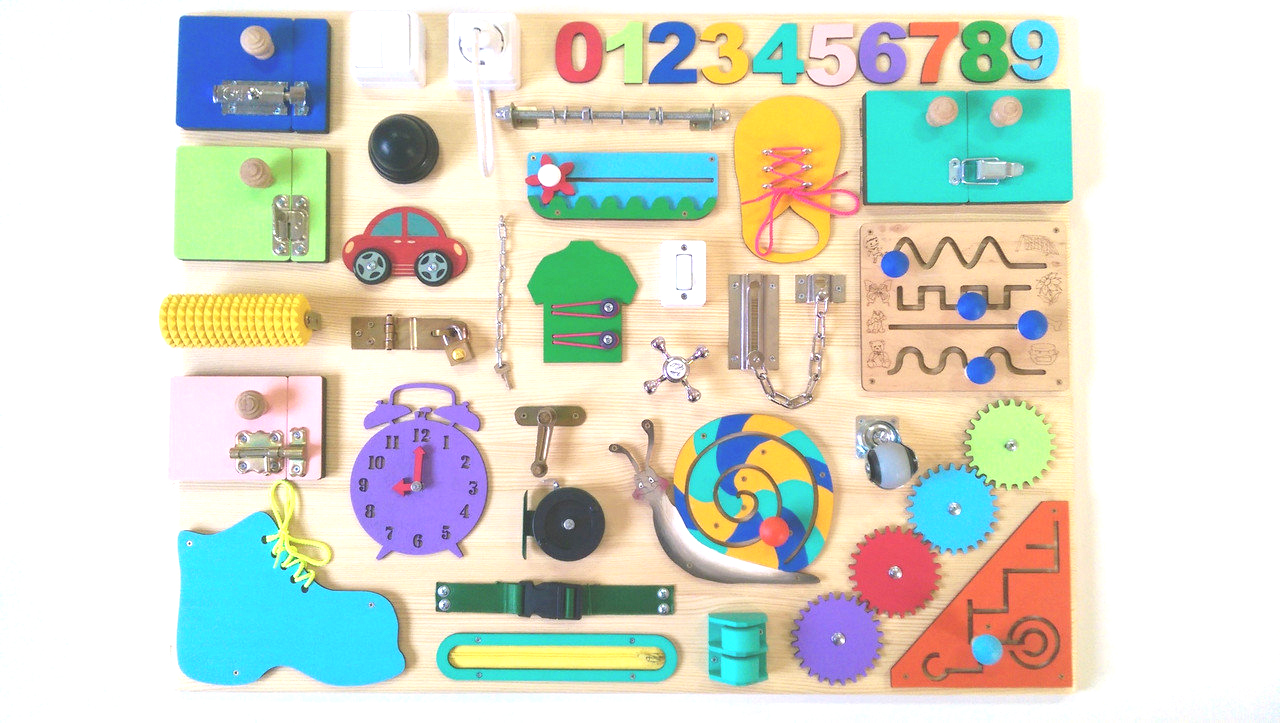Развивающая доска - бизиборд - сегодня уже приобрела чрезвычайно большую популярность и это не удивительно. Ведь этот яркий тренажер точно привлечет детское внимание! Он не только позволяет научиться использовать некоторые привычные для нас бытовые предметы, но и отлично тренирует мелкую моторику.