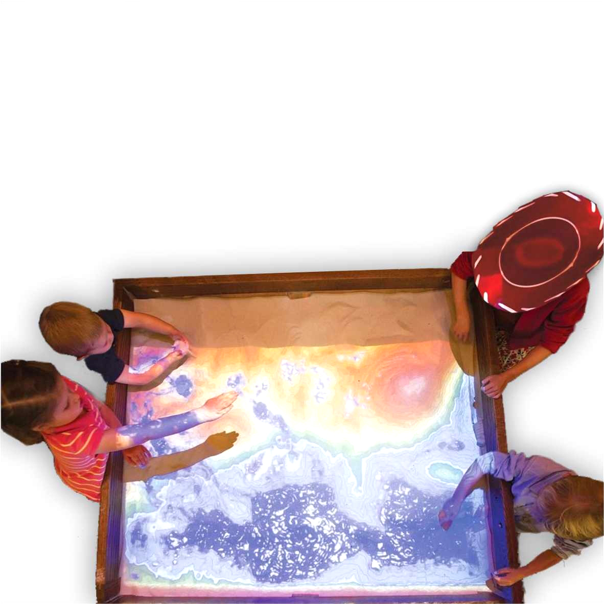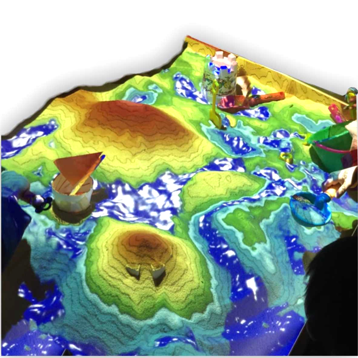 Комплекс оборудован системой, чувствительной к изменению расстояния до поверхности песка, поэтому все возвышения сразу превращаться в горы и равнины, а углубление - в реки, моря и океаны!