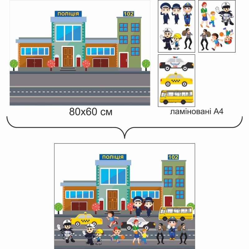 - полотно размером 60х80 см для крепления – в виде полицейского участка;