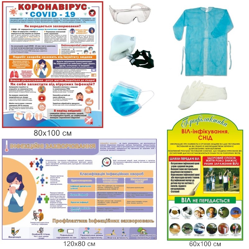 Стенды помогут доступно объяснить учащимся важную информацию, акцентируя внимание на самых важных моментах. А защитная форма медика, антисептик, медицинская маска и респиратор ознакомят детей с особенностями работы врачей и помогут лучше понять правила безопасного поведения и заботы об инфекционных больных.