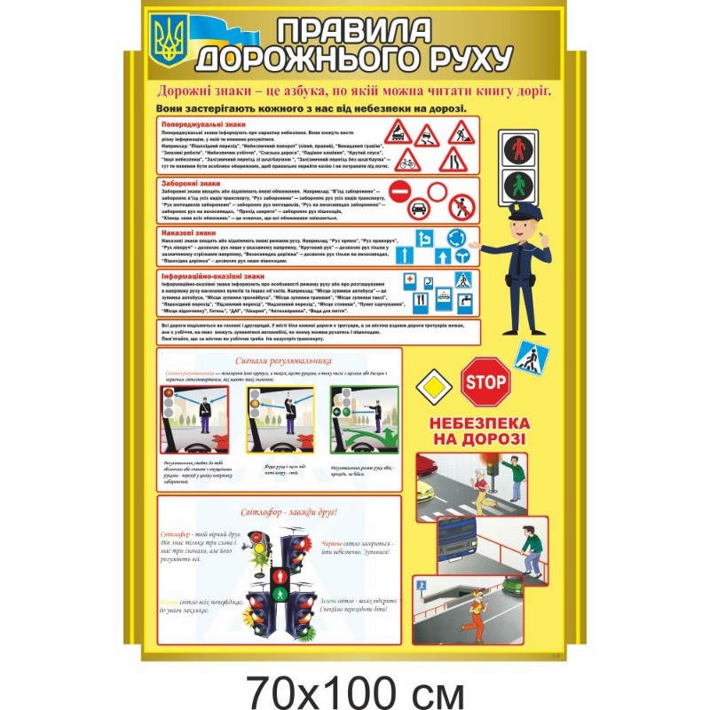 Данный стенд содержит информацию об основных правилах дорожного движения, которые важно знать детям школьного возраста. Стенд отвечает требованиям МОН и актуальной обучающей программе.