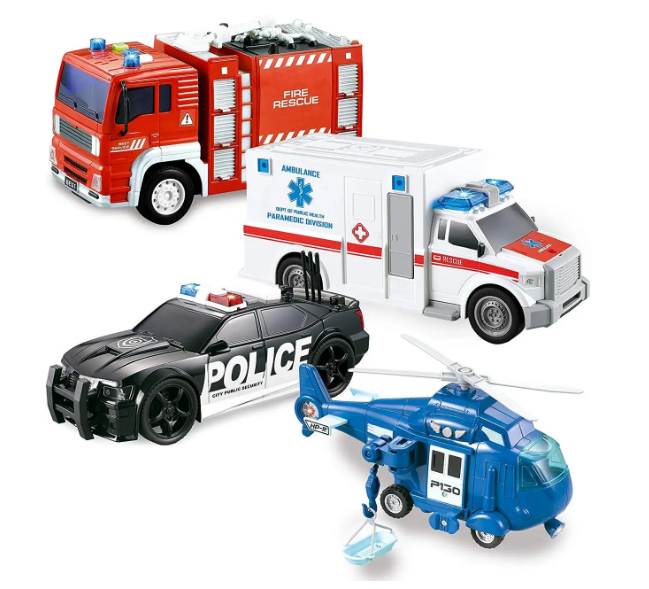 Благодаря играм с такими машинками, имитирующими реальный спасательный транспорт, дети приучатся различать спасательные службы по внешнему виду, изучат телефонные номера для вызова, не будут бояться сирен.