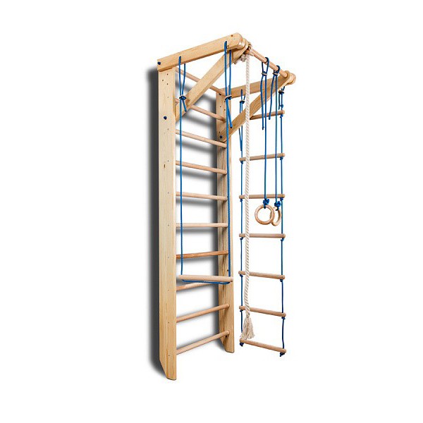 Уголок имеет надежную конструкцию и прочно крепится к стене при правильном монтаже. Шведская стенка и турник выдерживают значительные нагрузки до 130 кг, поэтому могут использоваться для детей любого возраста.