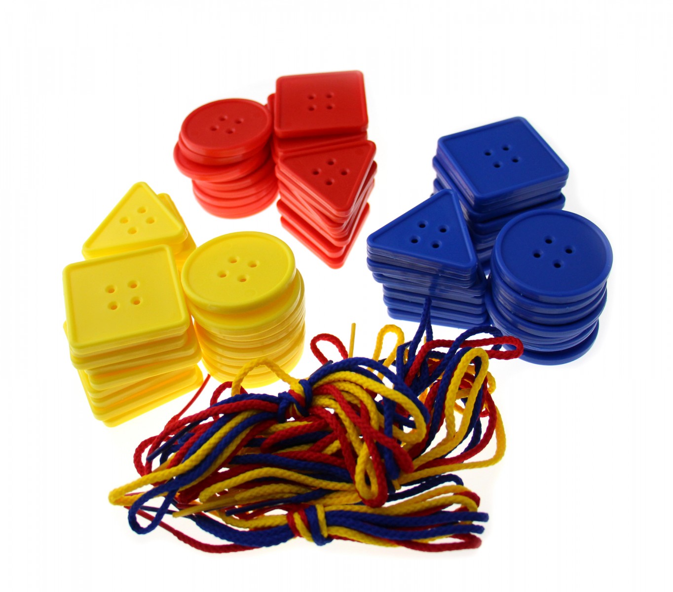 Набор геометрических фигур в форме пуговиц — полезный счетный материал для детей любого возраста.