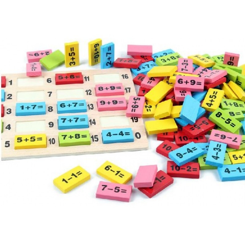 Деревянное домино для изучения основ арифметики в младших классах по методике Монтессори.