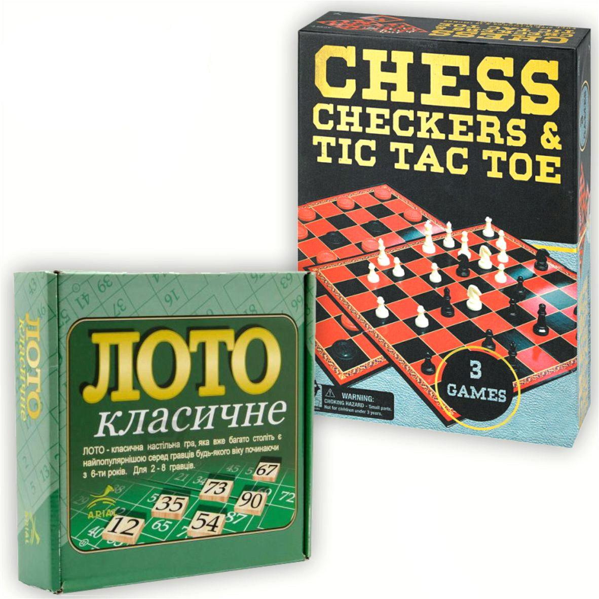 - шахматного набора 3 в 1 для игр в шашки, шахматы и крестики нолики. В него входит поле 36х36 см и соответствующие фигуры;