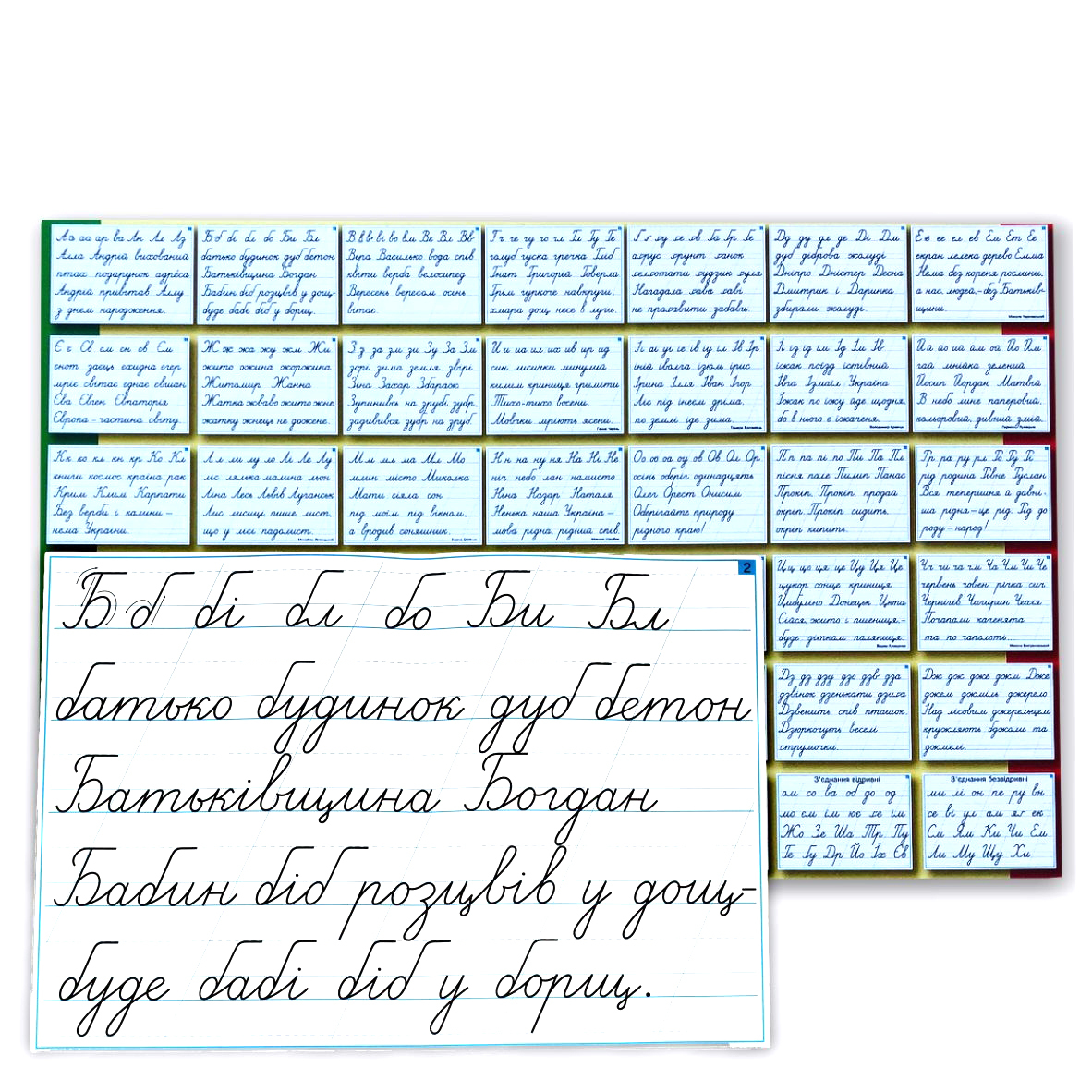 В комплекте вы найдете 64 таблицы, изготовленные из прочной бумаги, который обеспечит им длительный срок годности даже в случае ежедневного использования. Это практический и удобный дидактический инструмент, которому найдется применение в любом классе современной украинской школы.