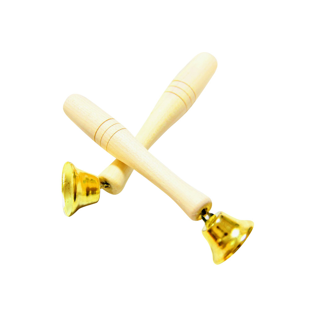 Набор из 2 детских колокольчиков с удобной деревянной ручкой — простой и доступный способ заинтересовать детей музыкой.
