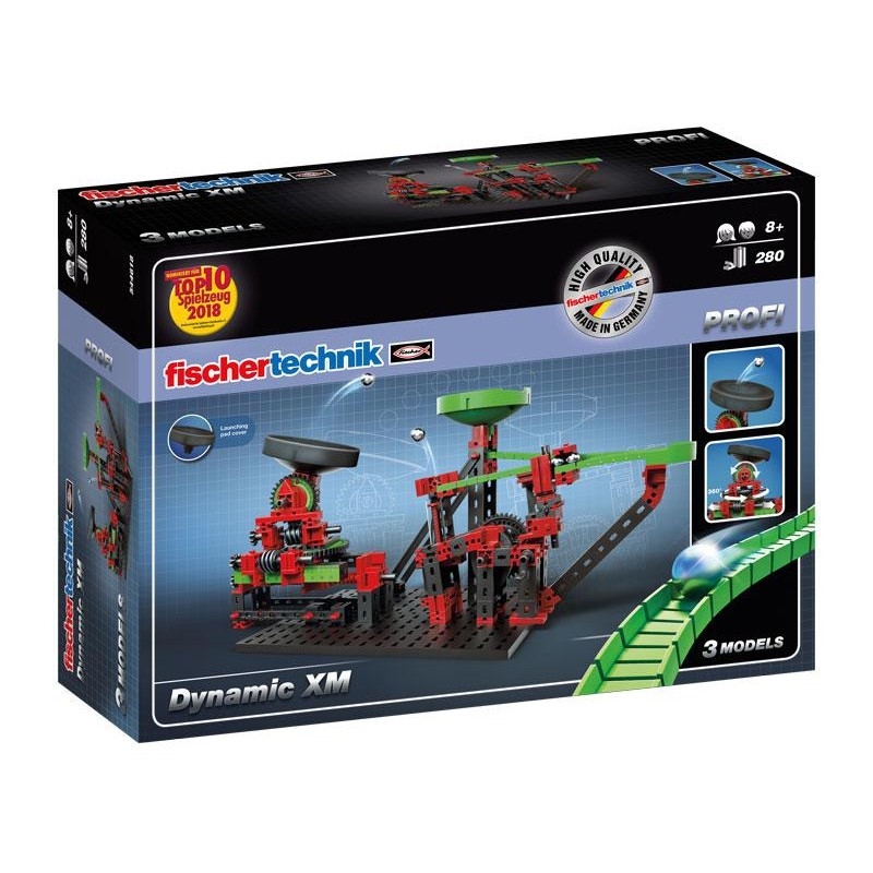 Конструктор fisсhertechnik PROFI Динамика — это немного более сложный, но от этого не менее интересный игровой набор. Его ключевая идея, как и во всех конструкторах серии Динамика, заключается в отслеживании движения шарика по определенной траектории. Только теперь его можно запустить еще и с катапульты!