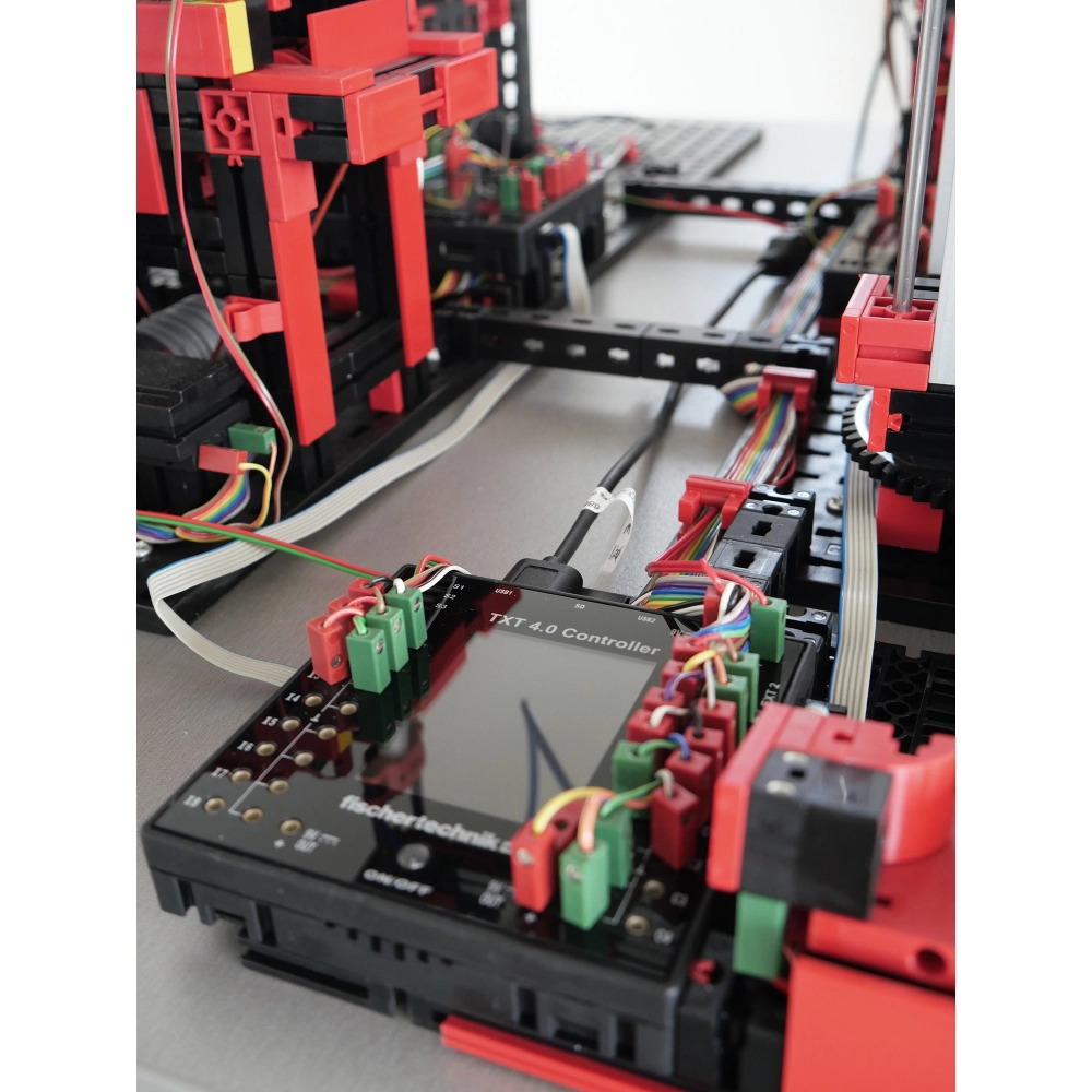 Управление фабрикой осуществляется с помощью контроллеров fischertechnik TXT 4.0, объединенных в единую сеть. Программирование и настройка процессов возможны в средах: