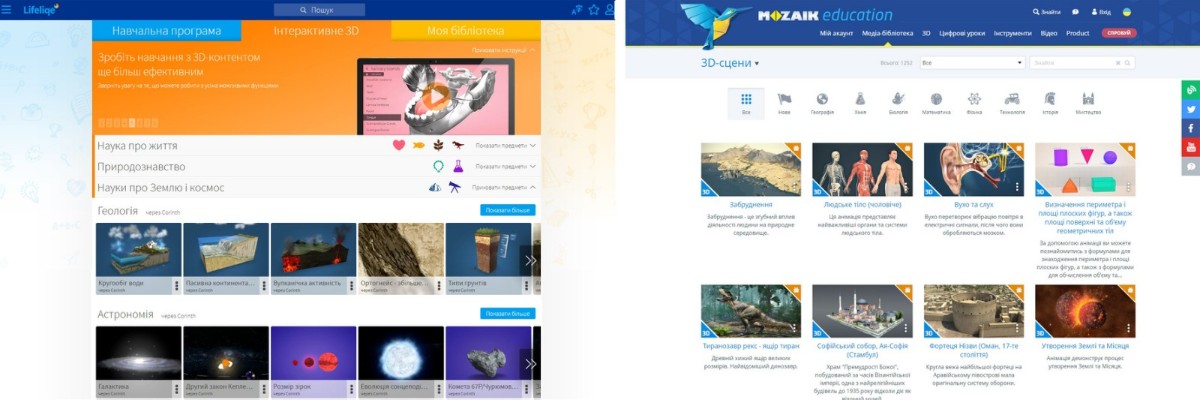 Кроме того, в mozaWeb большая часть материалов имеет звуковое украинском языке, тогда как модели Lifeliqe сопровождаются только текстовыми информационными справками (тоже украинский).