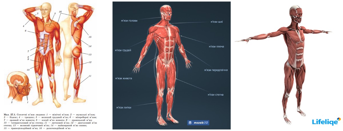 Сравним для примера иллюстрации в учебнике по биологии для 8 класса к разделу «Опора и движение» и соответствующие модели программ mozaWeb и Lifeliqe.